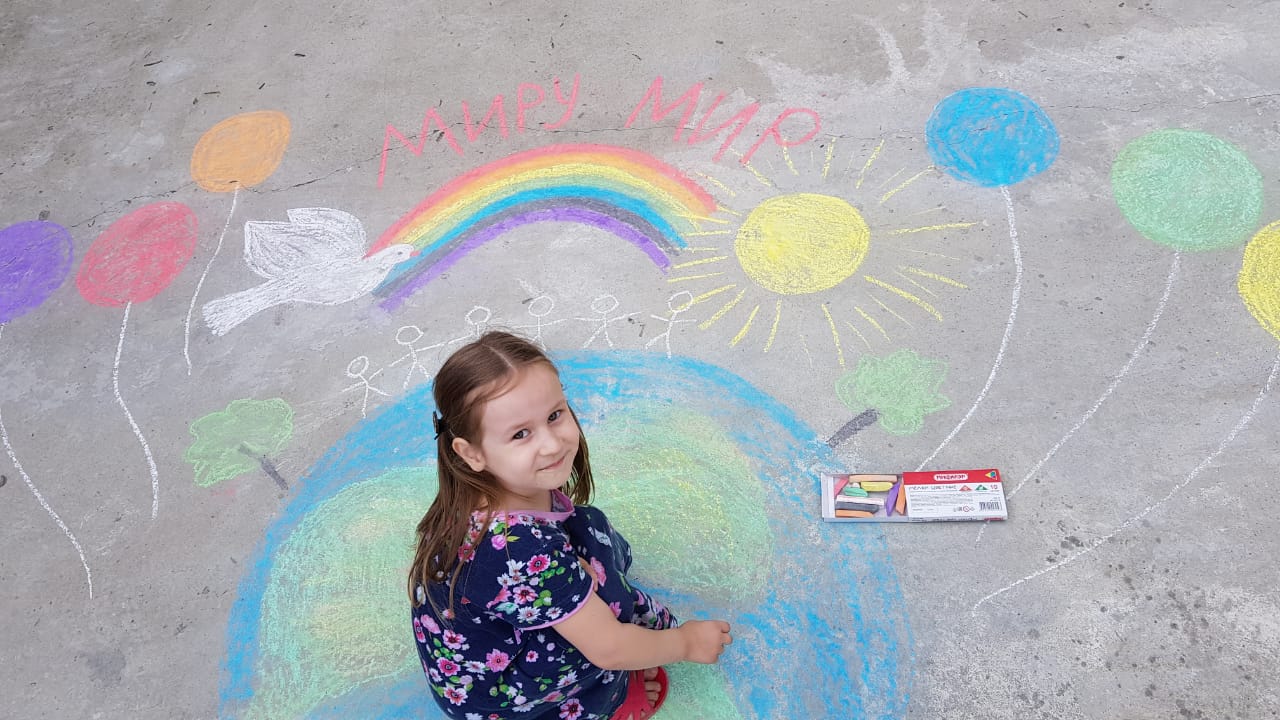 Воспитанники средней группы МБДОУ "Детский сад "Родничок" с. Центора-Юрт Грозненского муниципального района" приняли участие в акции "Я рисую мелом" #ярисуюмелом Воспитатель: Литтиева Залина Мурадовна.